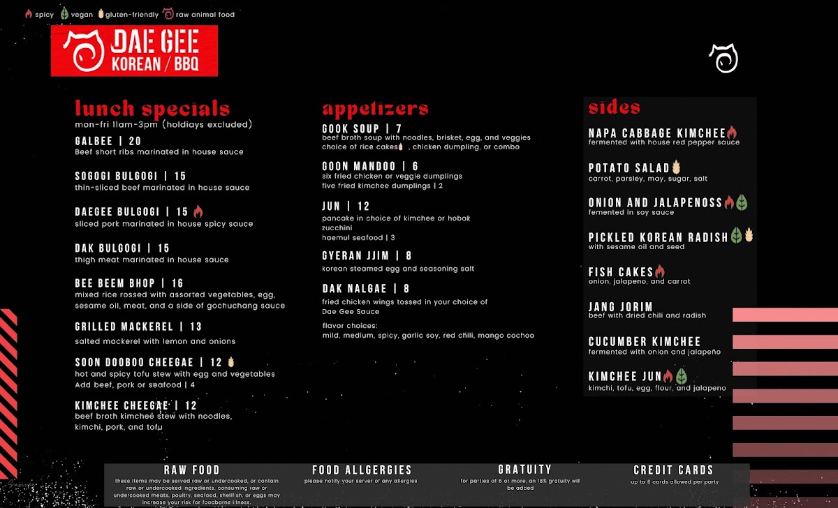 Welcome to DAE GEE KOREAN BBQ, where authentic Korean flavors meet exceptional service in San Antonio. Located at 19186 Blanco Rd #103, this eatery delights patrons with a diverse menu that features mouthwatering grilled meats, flavorful banchan (side dishes), and refreshing Soju cocktails.